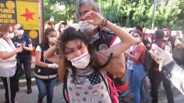 İzmir’deki İstanbul Sözleşmesi eylemlerinde pek çok kadın gözaltına alındı. Sosyal medyada paylaşılan videolarda polislerin kadınları darp ettiği görüldü. Kaynak: https://www.bbc.com/turkce/53673703